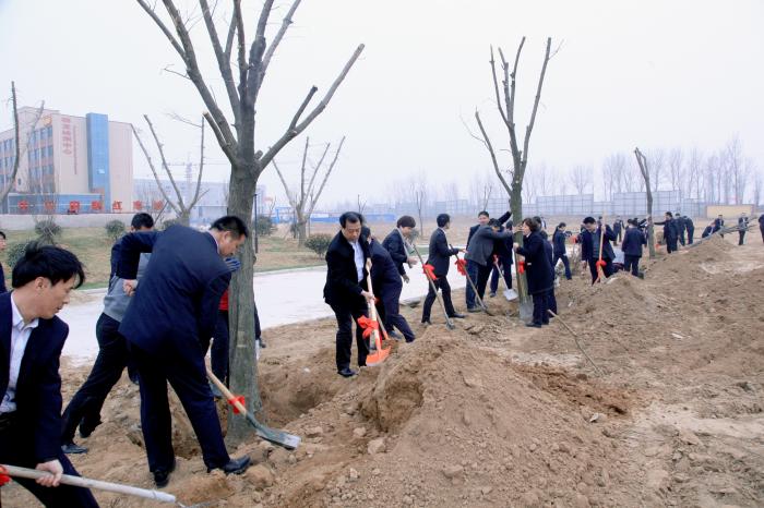 阳春三月,正是树木生长、万物复苏的好时节。当天下午,董事长一行冒着寒风,三五成组、干劲十足地进行挖坑、抬树、培土、浇水等,在红枣城园区内种下了71棵国槐树。在植树的过程中,大家充分发挥了协作精神,如合力将大树放入坑中、有人扶树、有人填土等等,还有人笑着说:“等我们搬来新厂了,就可以让各部门照看各部门的树啦,能看着这些树一天天成长,一定很有成就感!”