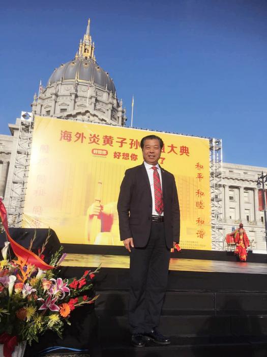 当天上午,上千华人华侨身着正装、佩戴黄丝巾,齐聚旧金山市府广场前,参与由“锣鼓喧天、敬献花篮、净手上香、行施拜礼、恭读拜文、高唱颂歌、乐舞敬拜、祈福中华、列队广场巡游”9项中国古代礼仪组成的大典仪式。整个活动现场庄严肃穆,在场的华夏儿女无不为这一期待许久的时刻而动容。
