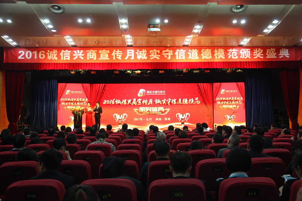 2016诚信兴商宣传月“诚实守信道德模范”颁奖盛典现场。