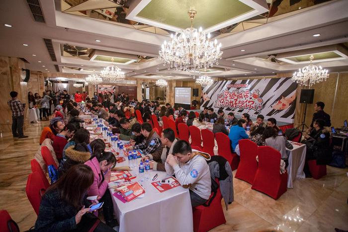 脱单派对预计3点半开始,而积极的男女嘉宾3点钟就来到现场,签到后在预先设定的位置上坐好。为了提升约会成功的概率,男女嘉宾们主动在小贴纸上写上自己的信息贴在交友墙上,希望有缘的另一半能够快点找到自己。等200位单身男女全部入场之后,为了活跃现场的气氛,主持人邀请5对单身男女玩起了“疯狂猜词”游戏,考验他们的默契度。